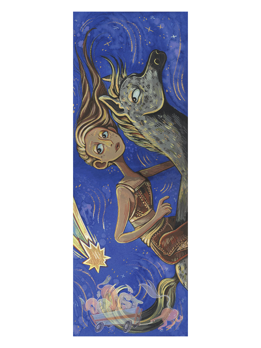 Prints of various illustrations on fine art paper, measuring roughly 11”x3.75”