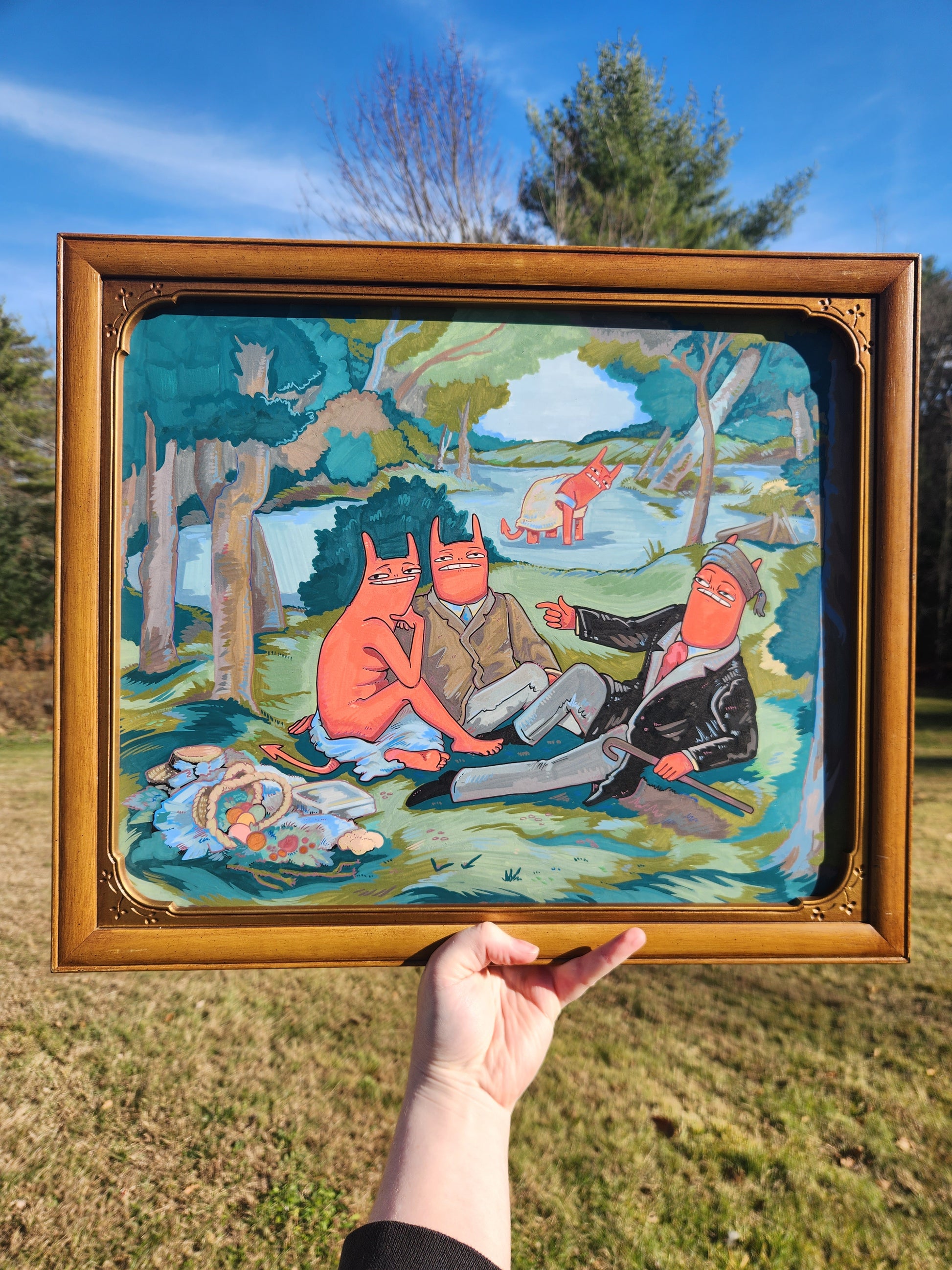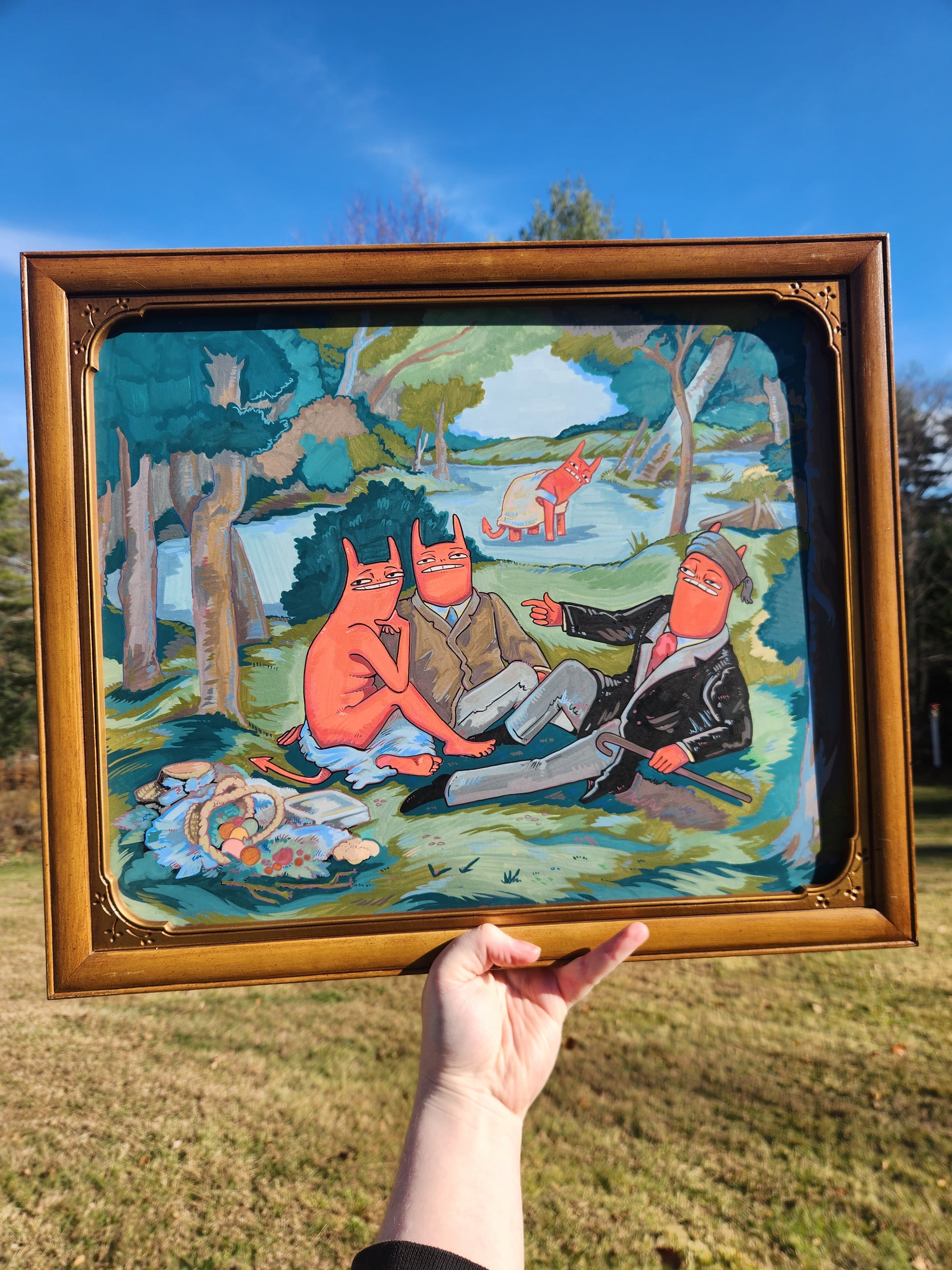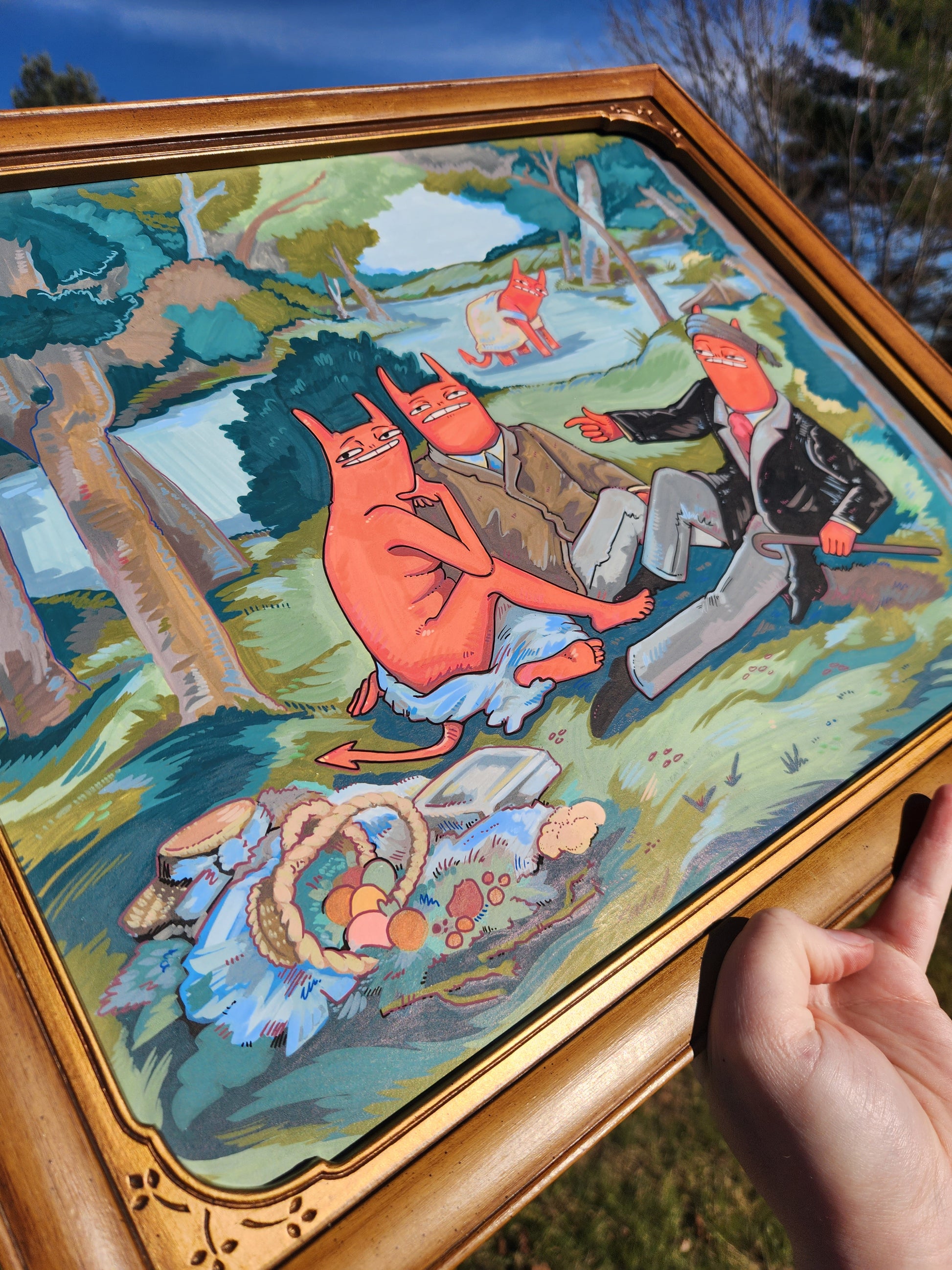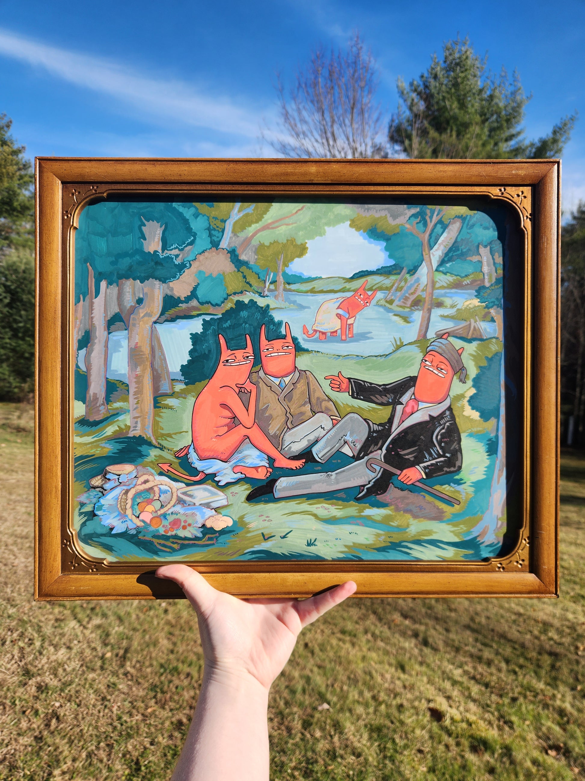 Original artwork parody of “Le Déjeuner sur l'herbe” by Édouard Manet titled, “Le Herbe Imps” drawn with acrylic on Bristol paper.