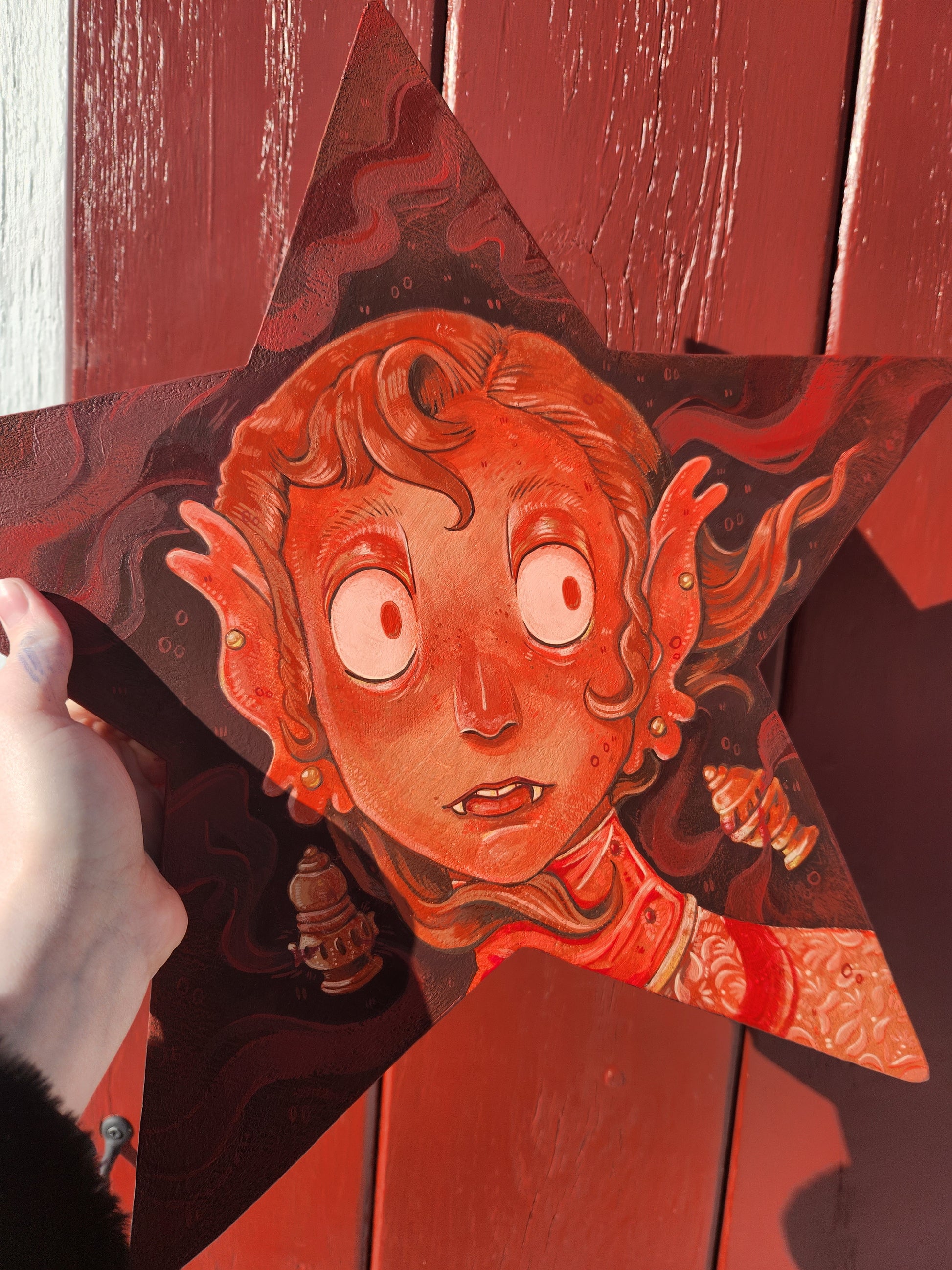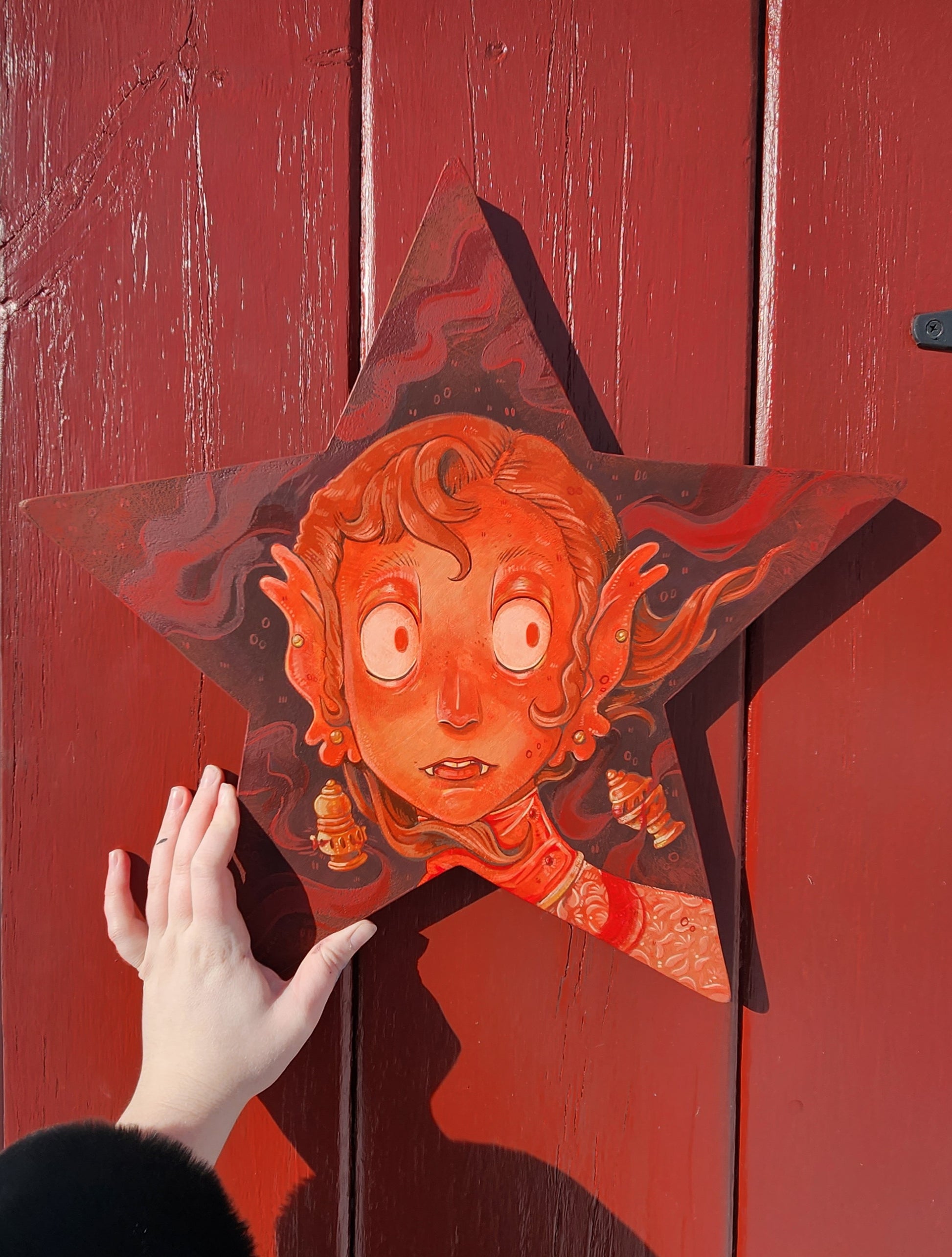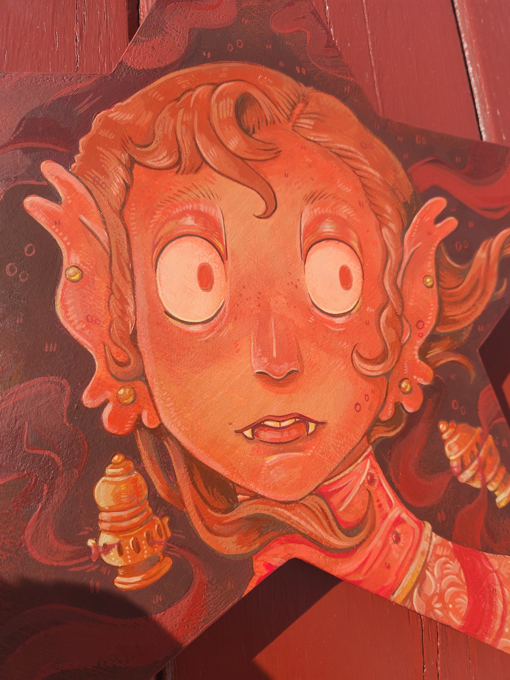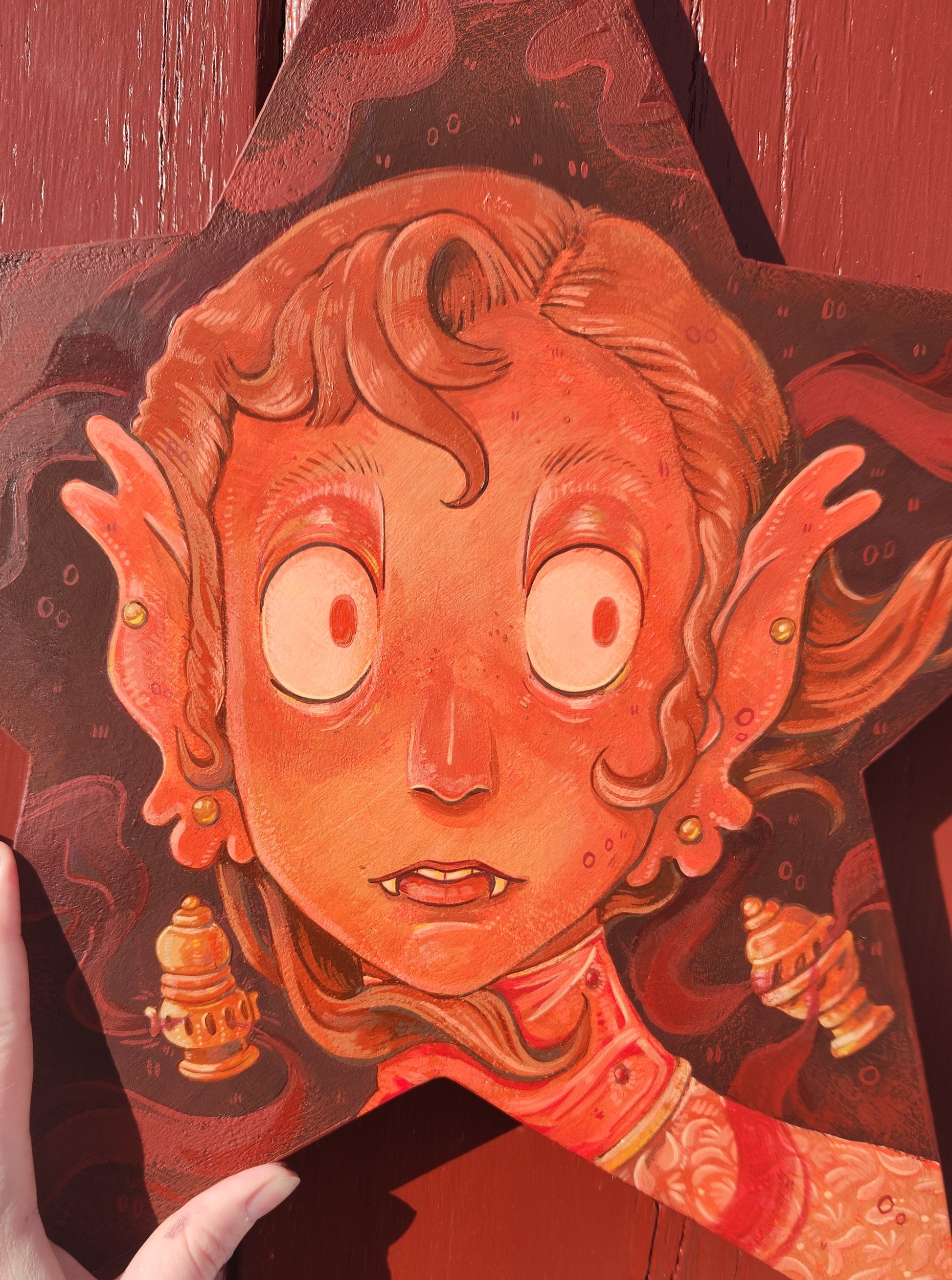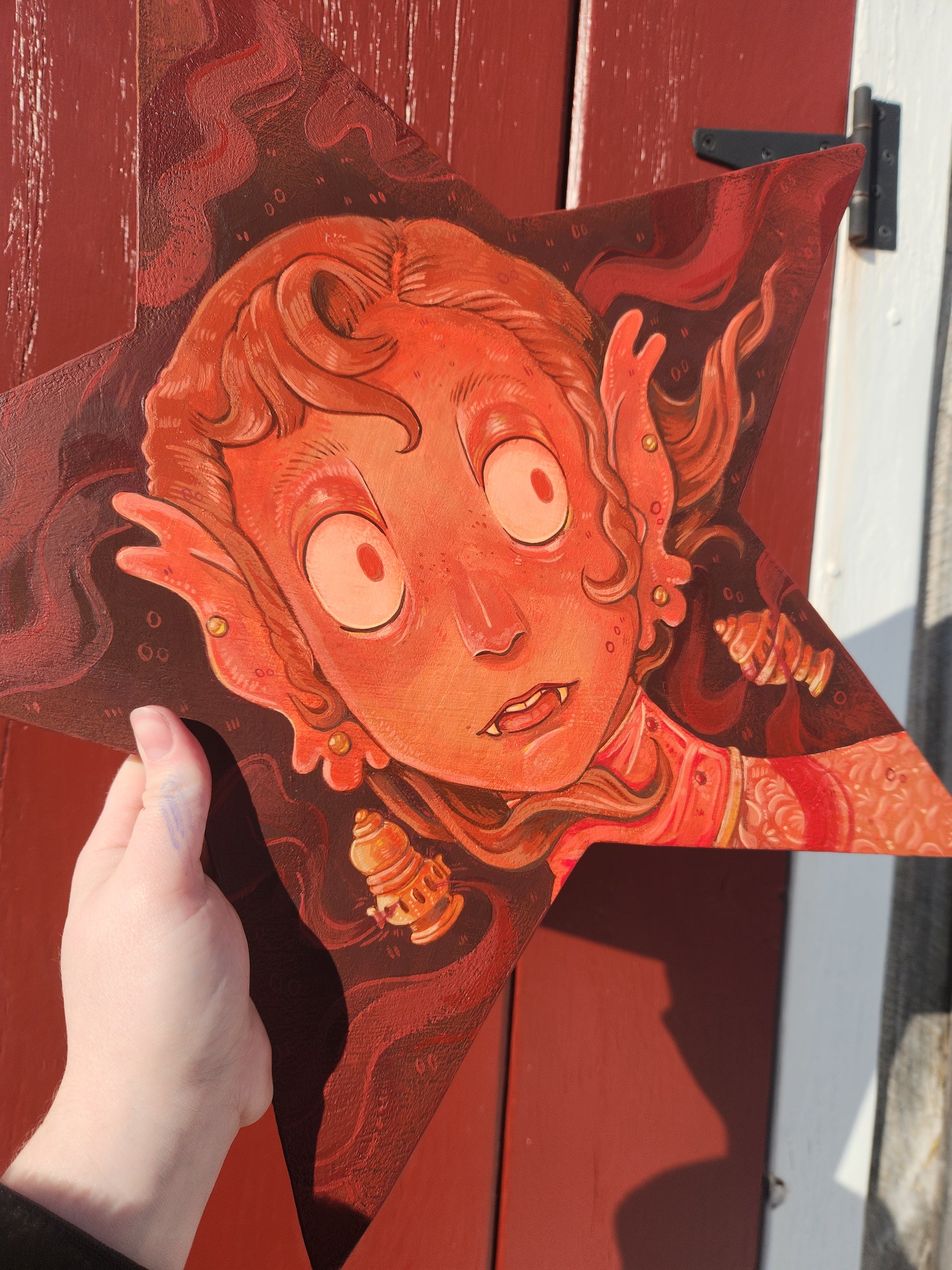 Original painting, "Thurible Vampire" painted with acrylic with glossy varnish on composite wood star.